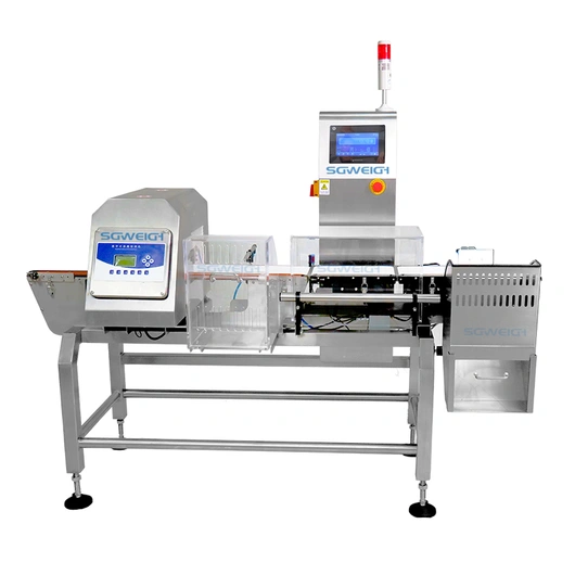 The metal detector and checkweigher combo for packing line combines metal contaminant detection with precision weight detection, detecting even the tiniest metal particles while ensuring that every product meets weight specifications. The combination metal detector and checkweigher system is easy to operate, provides efficient dual detection, has real-time rejection, is equipped with quick-change components and intuitive touchscreen controls, is made of stainless steel, has a very small footprint, and ensures product integrity.